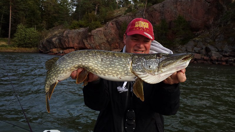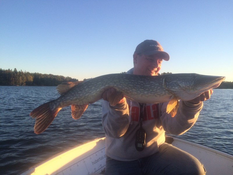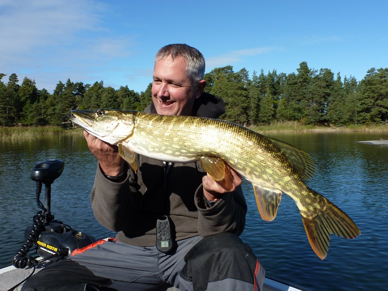 Bereits der erste Tag brachte reichlich Kontakte und jedes Boot fing in Zweier-Besetzung sicherlich 20-40 Hechte. Die Größen waren wie gewohnt in den Schären, zwar im Schnitt ganz nett, aber 90er mussten hart erkämpft werden. Dafür gab es aber an allen Tagen reichlich Fische und Bisse.
