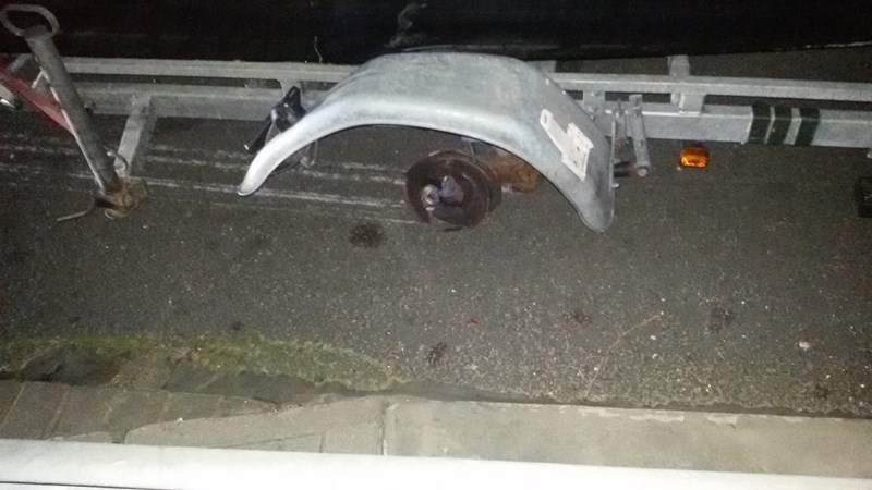 Wahnsinn, wir waren alle bereits 10 Stunden auf den Beinen und hatten es noch keine 100 km geschafft! Die Rückfahrt verlief dann weitestgehend unspektakulär, bis ich in Höhe des Buchholzer Dreiecks auf der Autobahn von einem lauten Schleif- und Nebengeräusch des Trailers aufwachte und etwas verstört Arnold fragte, was denn los sei. Arnold versuchte zu dem Zeitpunkt bereits, das Fahrzeug in ruhige Bahnen zu bringen und leicht ausrollen zu lassen, als uns von rechts mit einem Affenzahn das Rad inkl. Felge des Trailer ÜBERHOLTE. Das Rad hüpfte dabei nur so an uns vorbei und verschwand im Fernlicht. So kamen wir also auf dem Pannenstreifen zum Stehen.